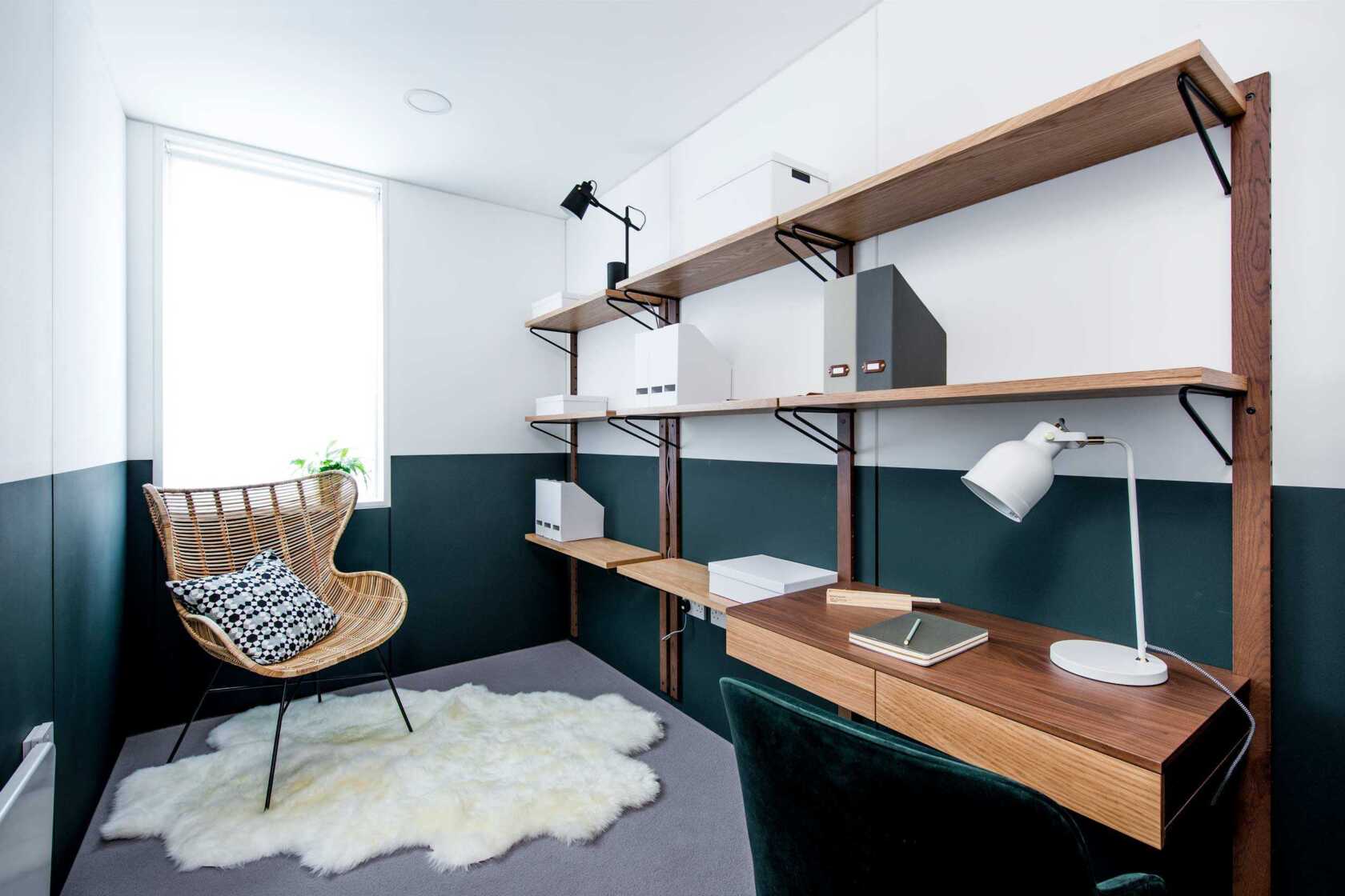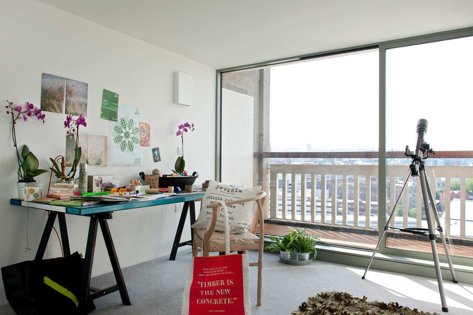 Where possible try and work near a window, open the curtain, put the blinds up and let the light in. Natural light will make any size space feel bigger and is likely to improve your mood.