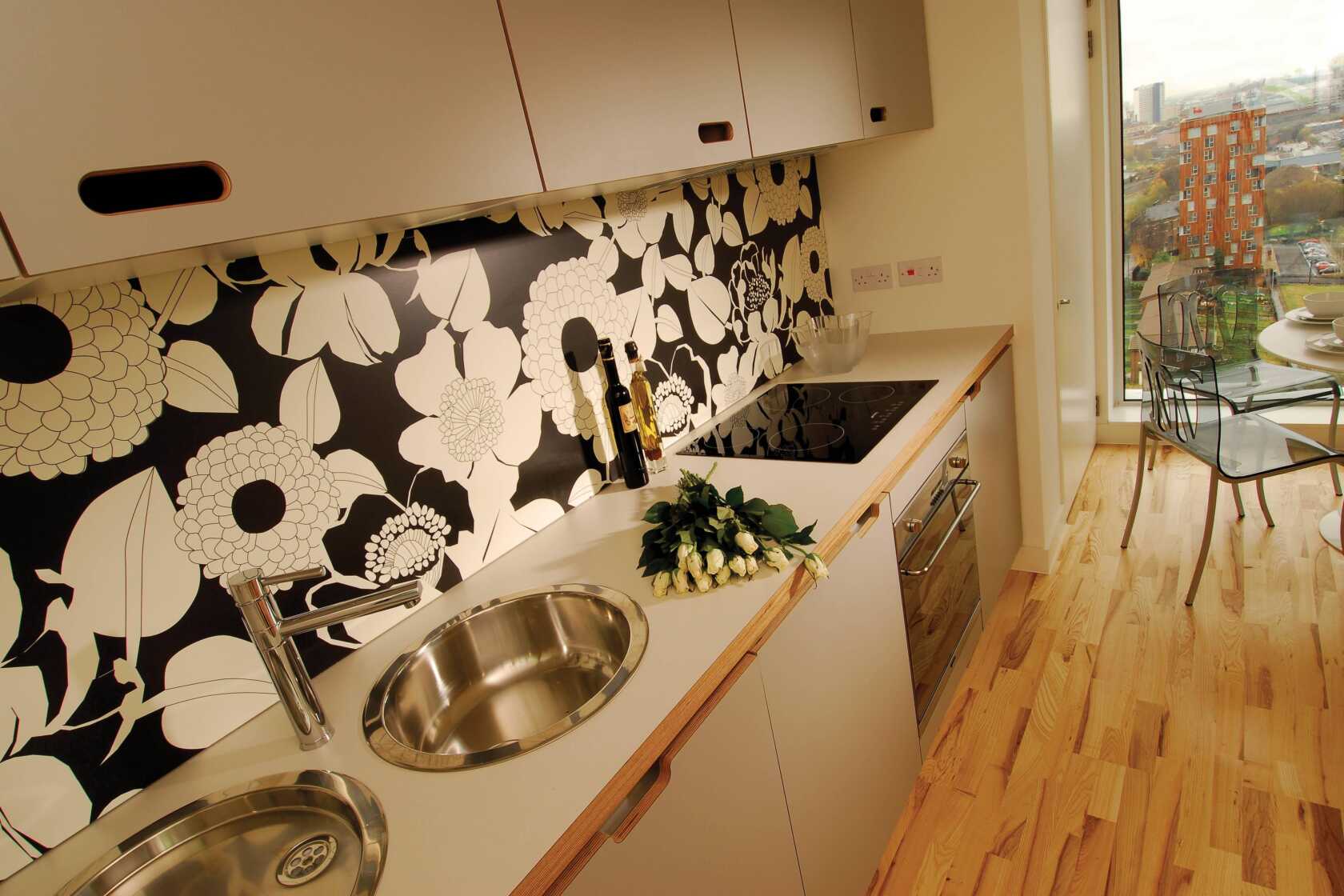 Designed by Union North architects to a high specification the apartments even have a bespoke designed kitchen splashback. Every apartment has a parking space and ground floor apartments also benefit from private gardens.