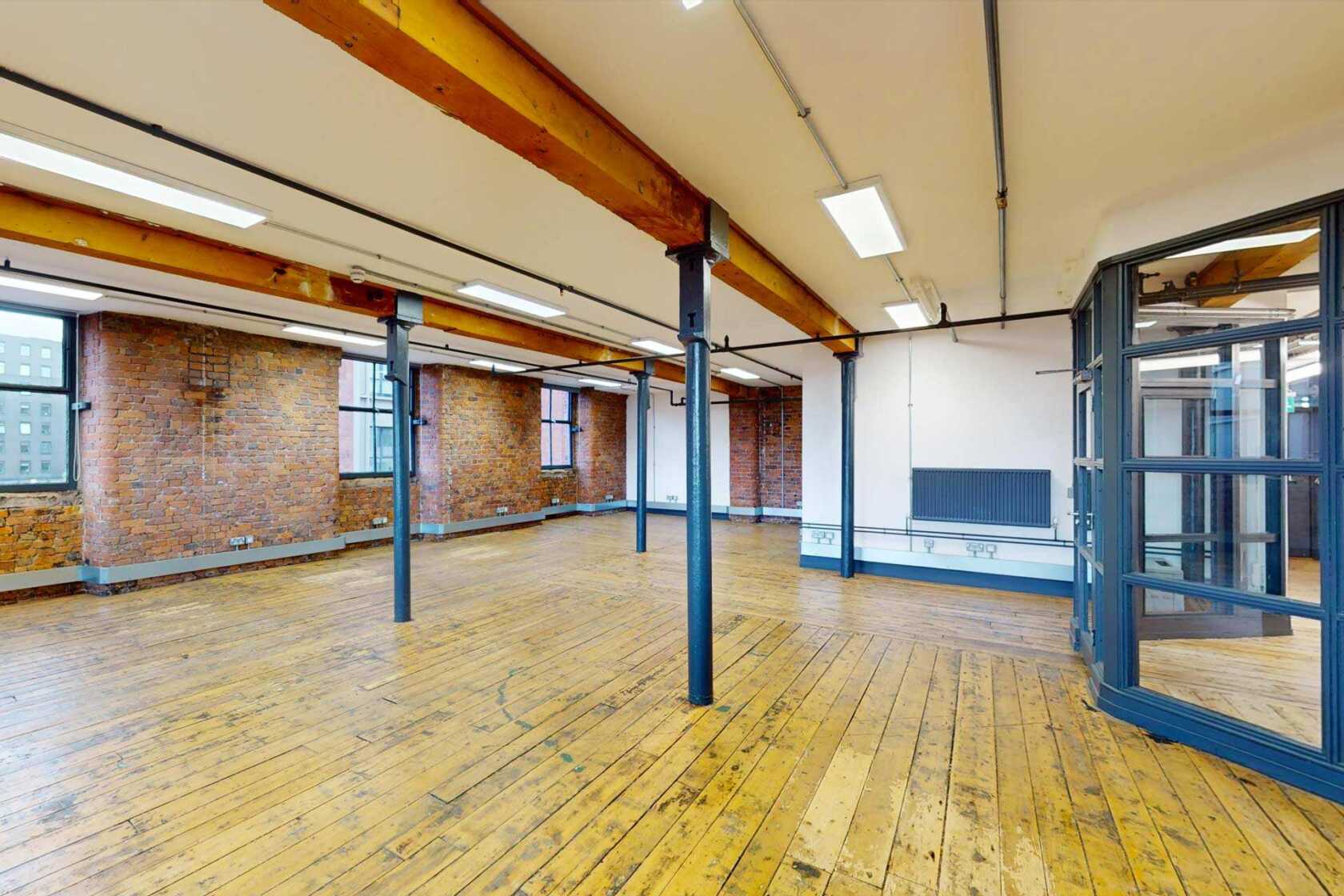 Beehive Mill is a characterful Urban Splash workspace in the heart of Ancoats, Manchester. Housed in a 200-year-old former cotton mill, Unit 2B/2C offers 1,073 sq ft of beautifully designed space with exposed brickwork, original beams, cast iron columns, and fantastic natural light – all in one of the city’s most vibrant neighbourhoods.