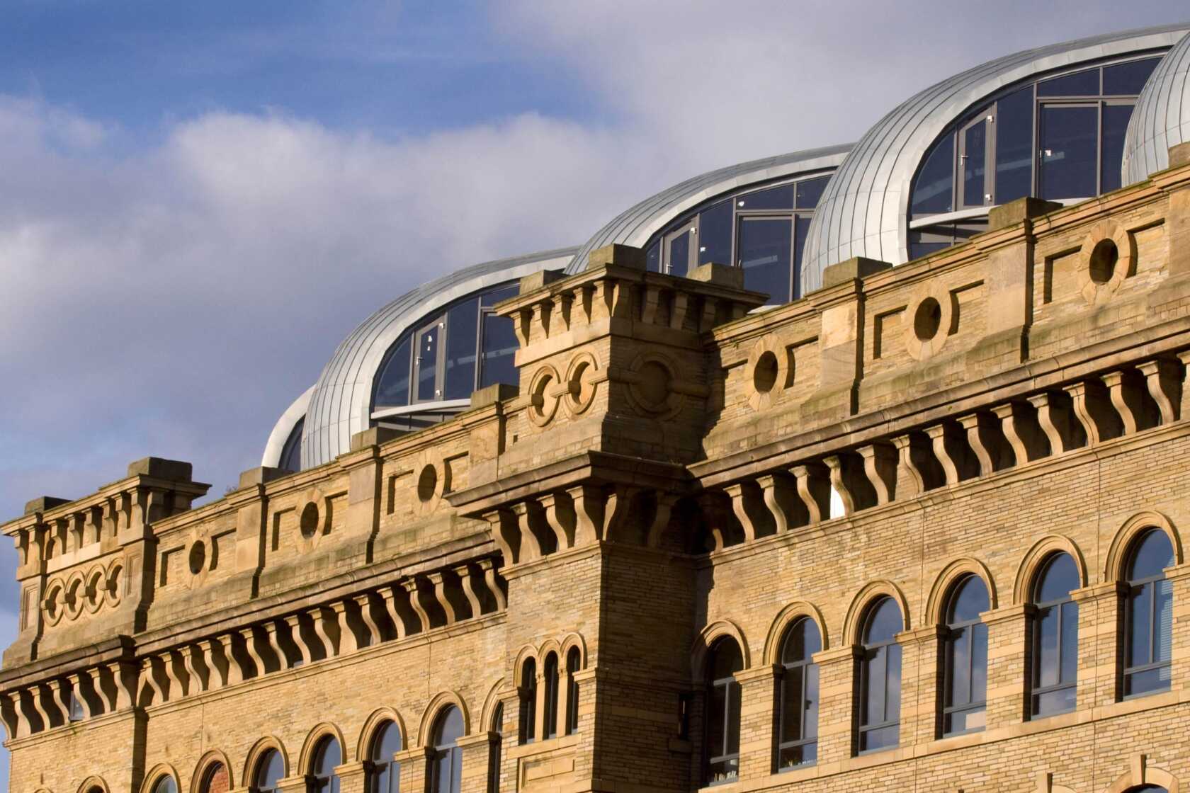 Exposed brick work, original cast iron columns and vaulted ceilings enhance the residential and commercial spaces in both buildings. The current phase of works will see the completion of the Velvet Mill roof “pods” creating a further 30 homes. These innovatively designed apartments will offer residents arguably the very best views in Bradford.
