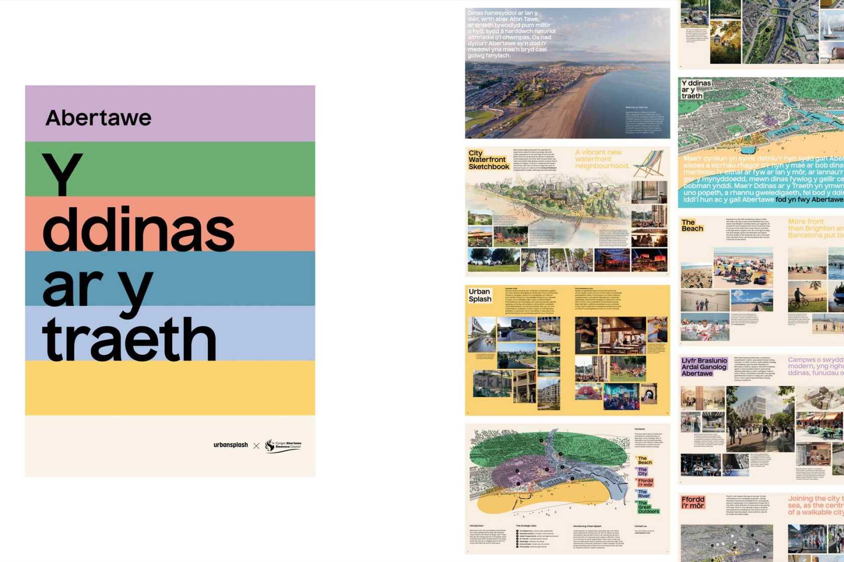 Wedi'i greu gan y cwmni adfywio arobryn, Urban Splash, a benodwyd yn bartner strategol i Gyngor Abertawe yn 2021, mae'r llyfr braslunio yn amlinellu gweledigaeth gychwynnol dan faner ymbarél Y Ddinas ar y Traeth.