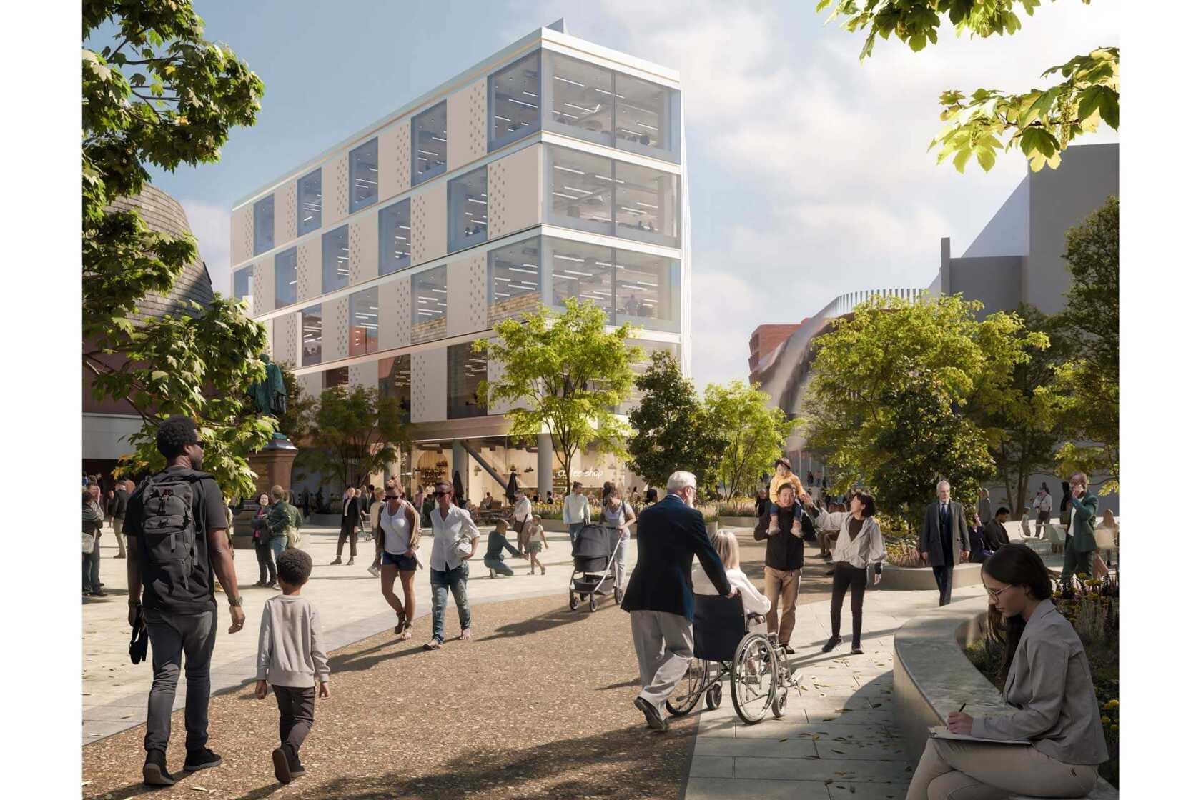 Plans have been approved for a five-storey, 47,964 sq ft public sector hub building which stands at the former St David’s Shopping Centre and has been designed by architects shedkm.